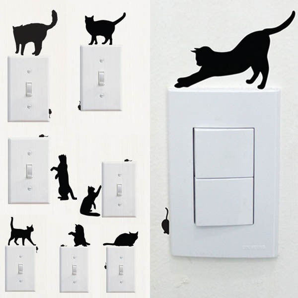 スイッチシール ネコとネズミ ウォールステッカー アート 北欧風 インテリア 壁デコ 電気スイッチ用 DIY