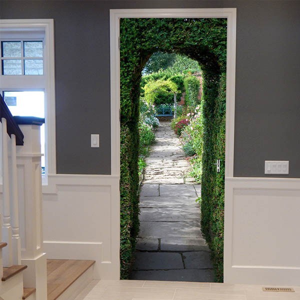 ドアステッカー トリックアート 秘密の花園 トンネル ヨーロピアン庭園 だまし絵シール インテリア DIY