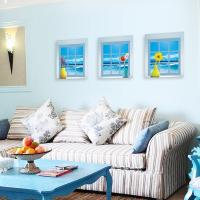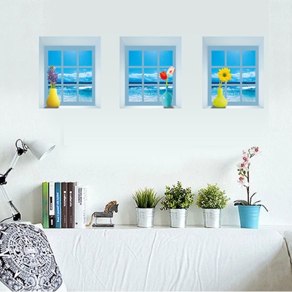(訳あり) 3枚1セット だまし絵ウォールステッカー 小窓 海 風景 トリックアート 壁デコ 北欧風 DIY リビング 寝室
