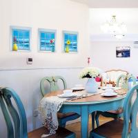 まるで海の見える小屋にいるようなデザインのステッカーです。