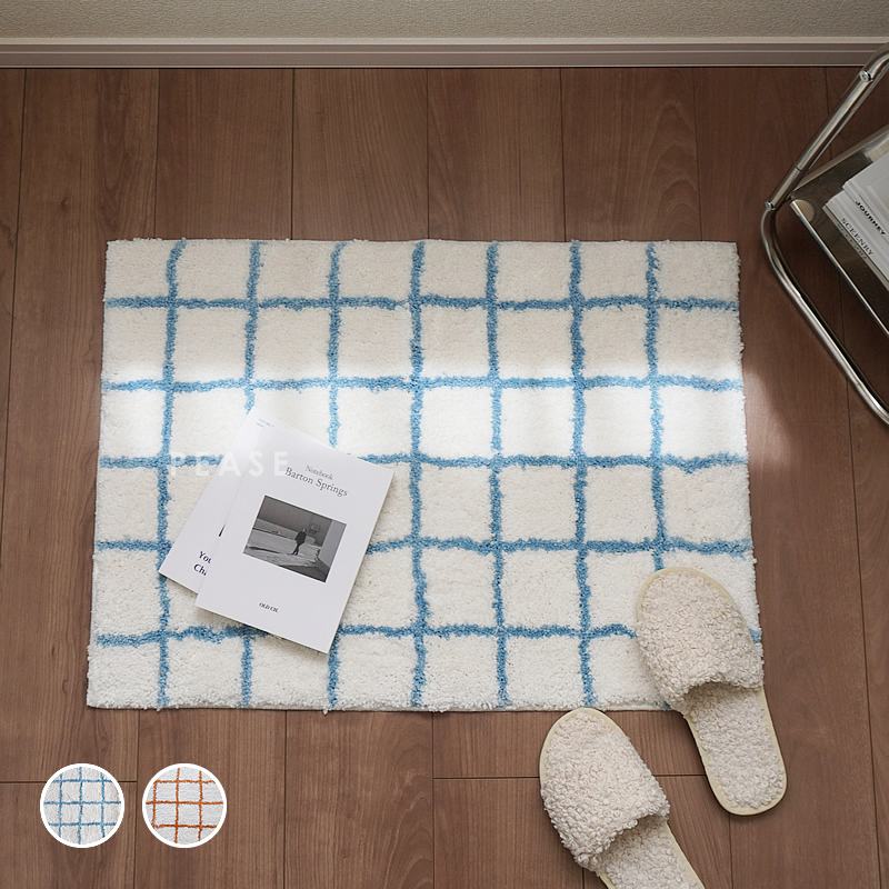シンプルでありながらもスタイリッシュなグラフチェック柄の室内マットです。ホワイトを基調とした爽やかなブルーチェックと、温かみのあるオレンジチェックの2種類があります。どちらもお部屋を明るく彩り、どんなインテリアにも簡単に馴染みます。このマットのサイズは50×70cmで、ちょうど良い大きさです。玄関での第一印象を上げるアイテムとして、またベッドの横やデスクの下など、毎日の生活空間にすっと溶け込むデザインです。