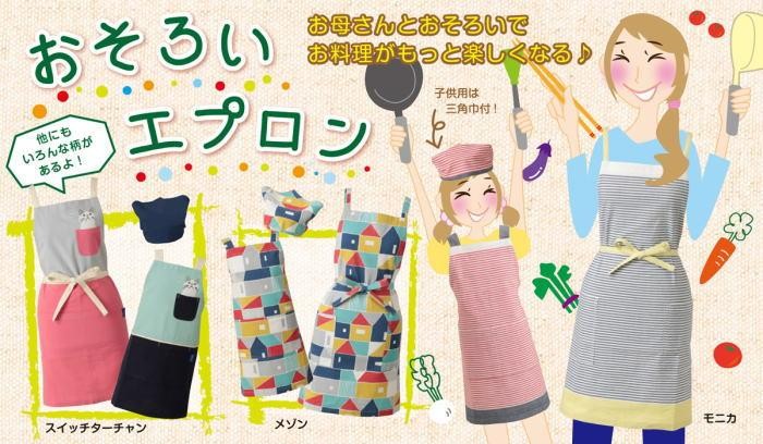 お子様と同じ柄をお選び頂いて、おそろいエプロンに!
