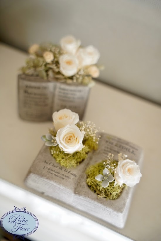 キーワード:ブック型のベースとプリザーブドフラワーアレンジ。プレゼントにもお勧め!小さめのアレンジです。