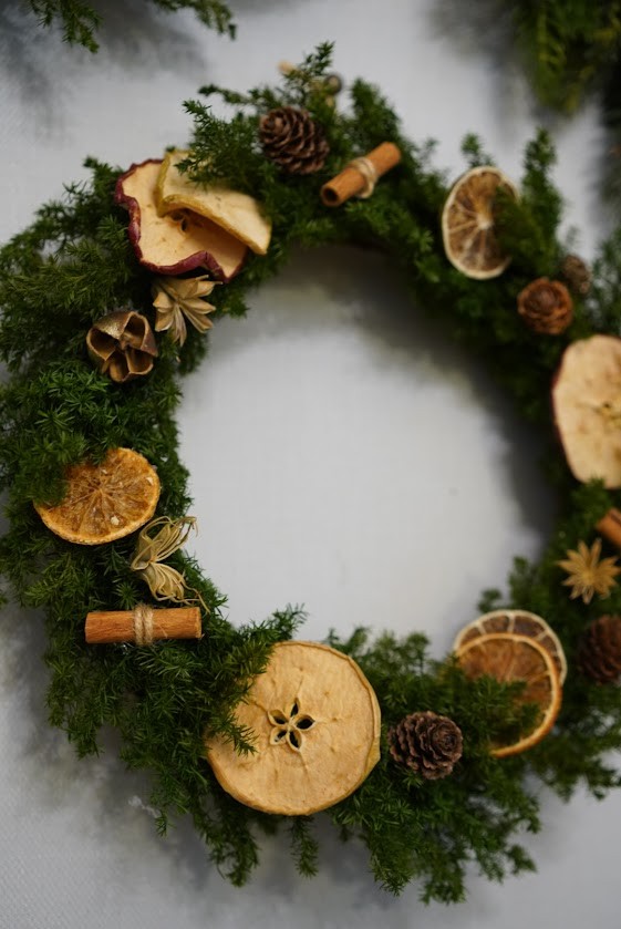 生のリースのような、高級感のあるクリスマスリース。