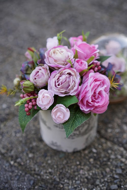 アーティフィシャルフラワーでお作りしたピンク系のパリスタイルフラワーアレンジ