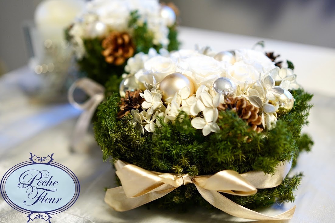 クリスマス、クリスマスアレンジ プリザーブドフラワーのクリスマスアレンジ。お家が華やかに。