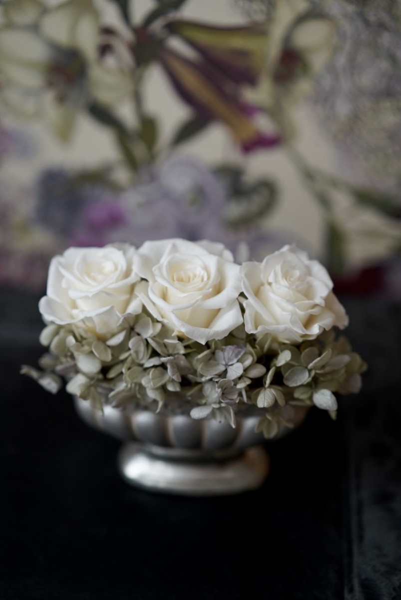 プリザーブドフラワーのローズやアジサイのアレンジ。