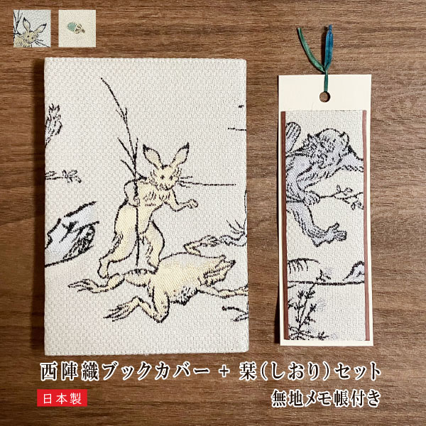 【数量限定販売】西陣文具 西陣織ブックカバー メモ帳しおり付き nisizin10-books-set 鳥獣戯画 カエル サル ウサギ きのこ 京都 和雑貨 日本製 長角堂