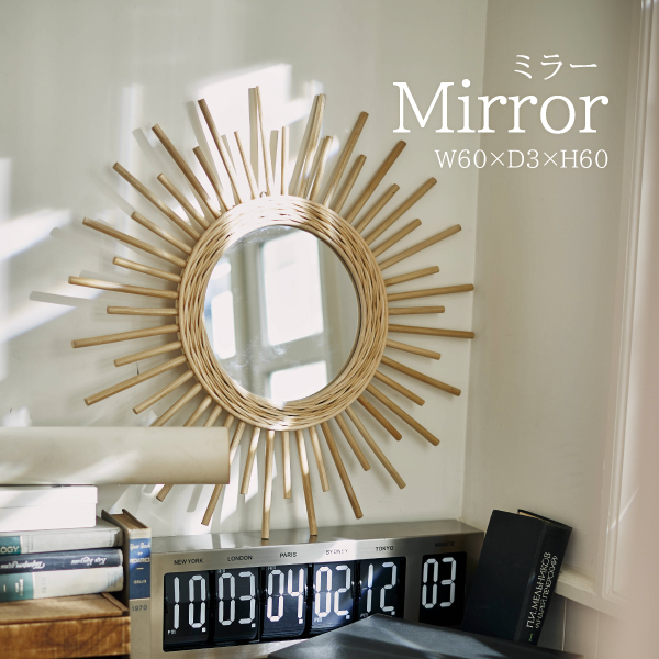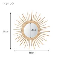 ミラー MR-713 壁掛け 鏡 丸型 ラタン 太陽 手編み リゾート風 インテリア おしゃれ アジアン 籐 ナチュラル 南国