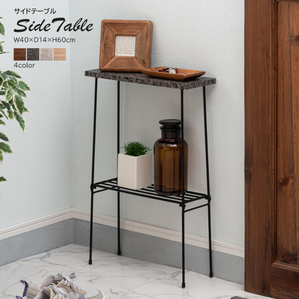 ☆ サイドテーブル PT-204 テーブル 収納 飾り棚 おしゃれ 木目調 スチール 幅14cm シンプル 玄関 玄関テーブル シンプル リビング ダイニング ショップ 店舗