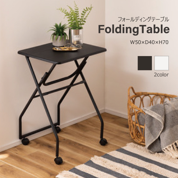 折りたたみ式テーブル PT-300BK PT-300WH フォールディングテーブル ハイテーブル キャスター付き テーブル 机 移動 収納 折りたたみ 高さ70cm