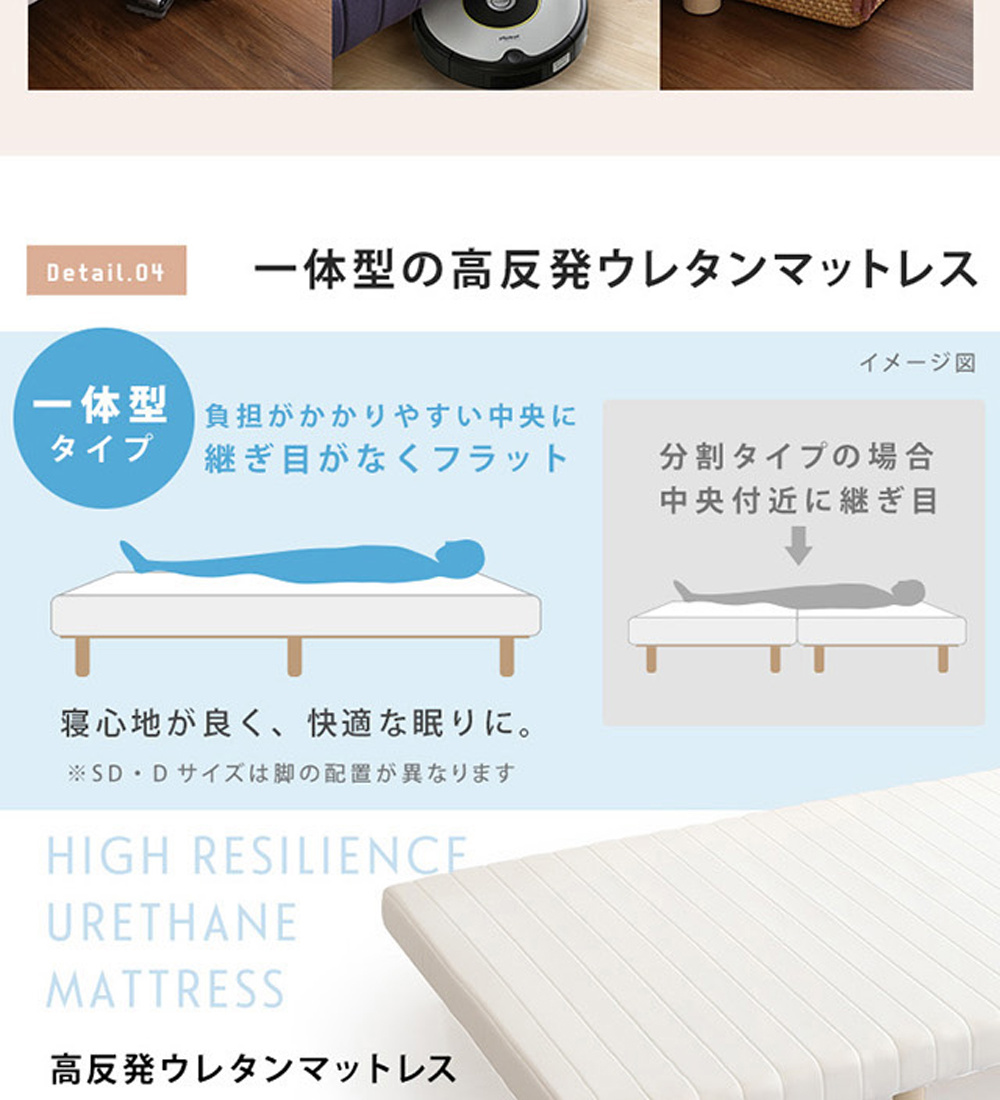 [商品について]【脚付きウレタンロールマットレス(TERRDAM-テルダ-)セミダブルサイズ】