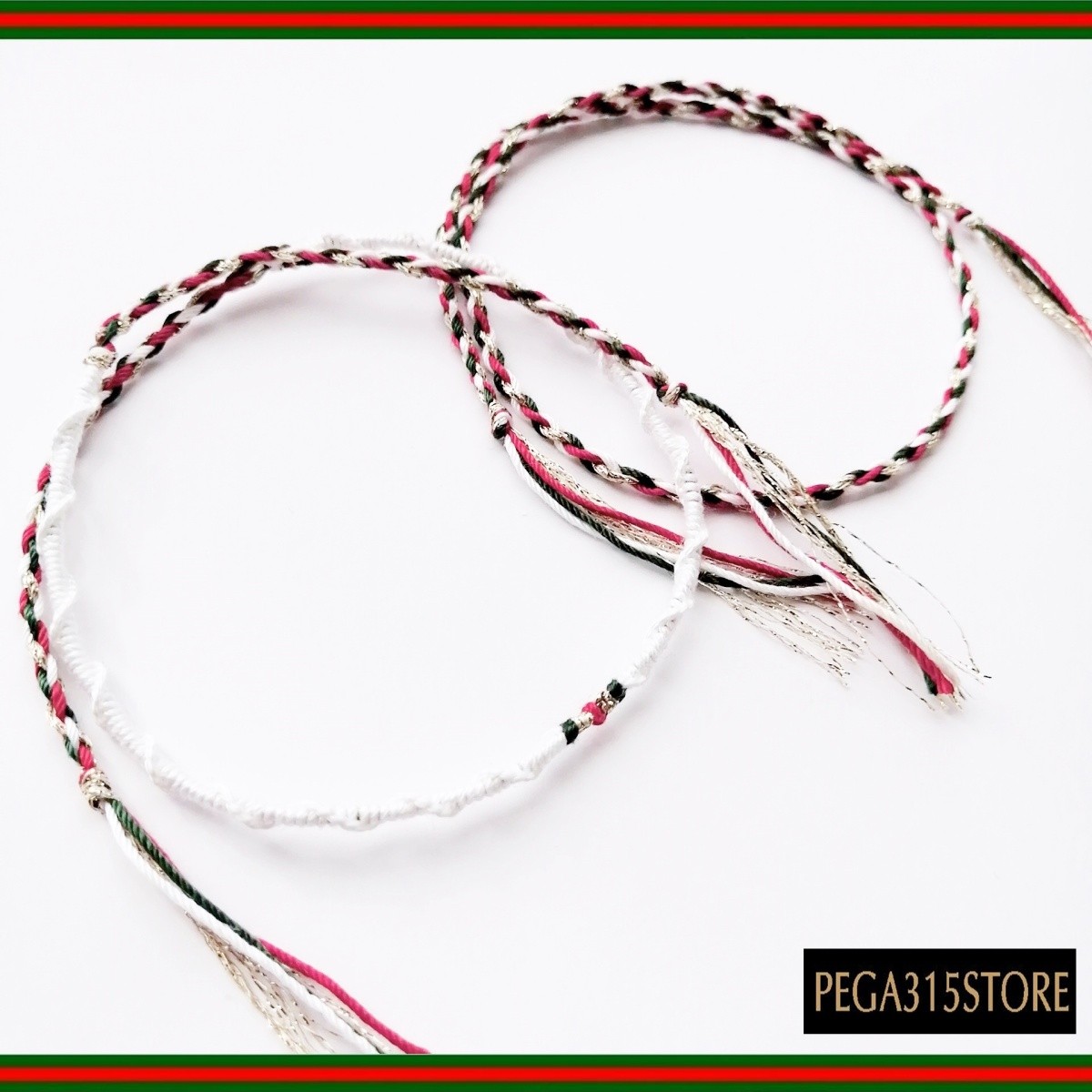 長さ:約35cm 素材:刺繍糸 グッチ3本ラインカラー 色:白・緑・赤・シャンパンラメ