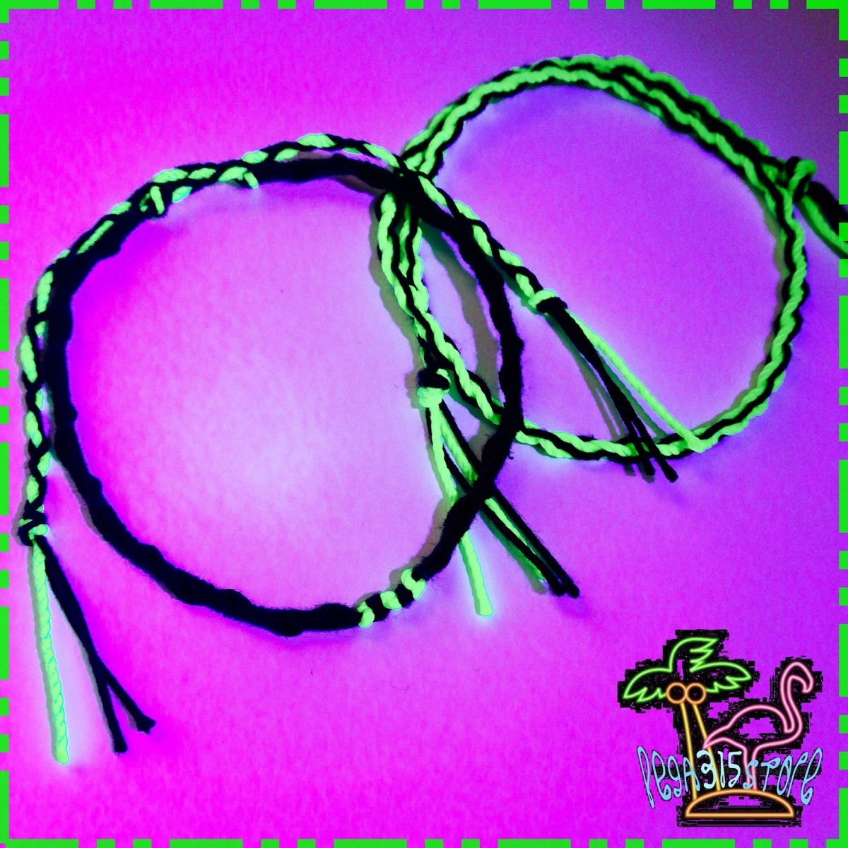 足用ミサンガです。 海外アーティストのPVで流行中のブラックライト×ネオンです。