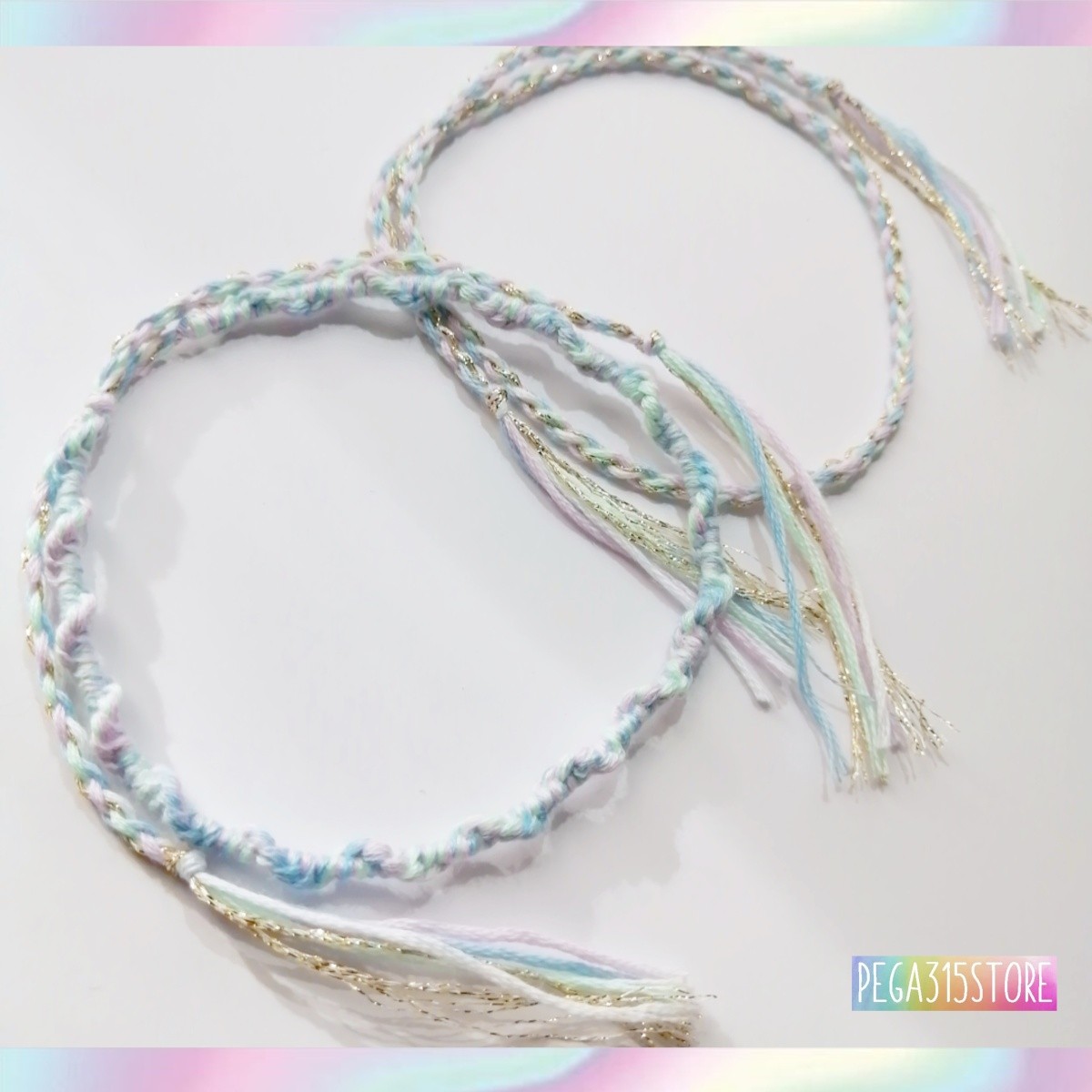 長さ:約35cm 素材:刺繍糸 色:パステルラベンダー・パステルミントグリーン・白・パステルスカイブルー・シャンパンラメ