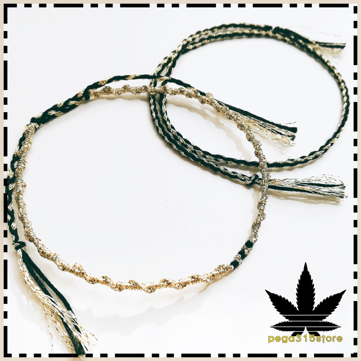 長さ:約35cm(三つ編み部分:6.5cm センター部分:19cm) 素材:刺繍糸 黒金 色:黒・シャンパンゴールドラメ(上品なゴールドです)