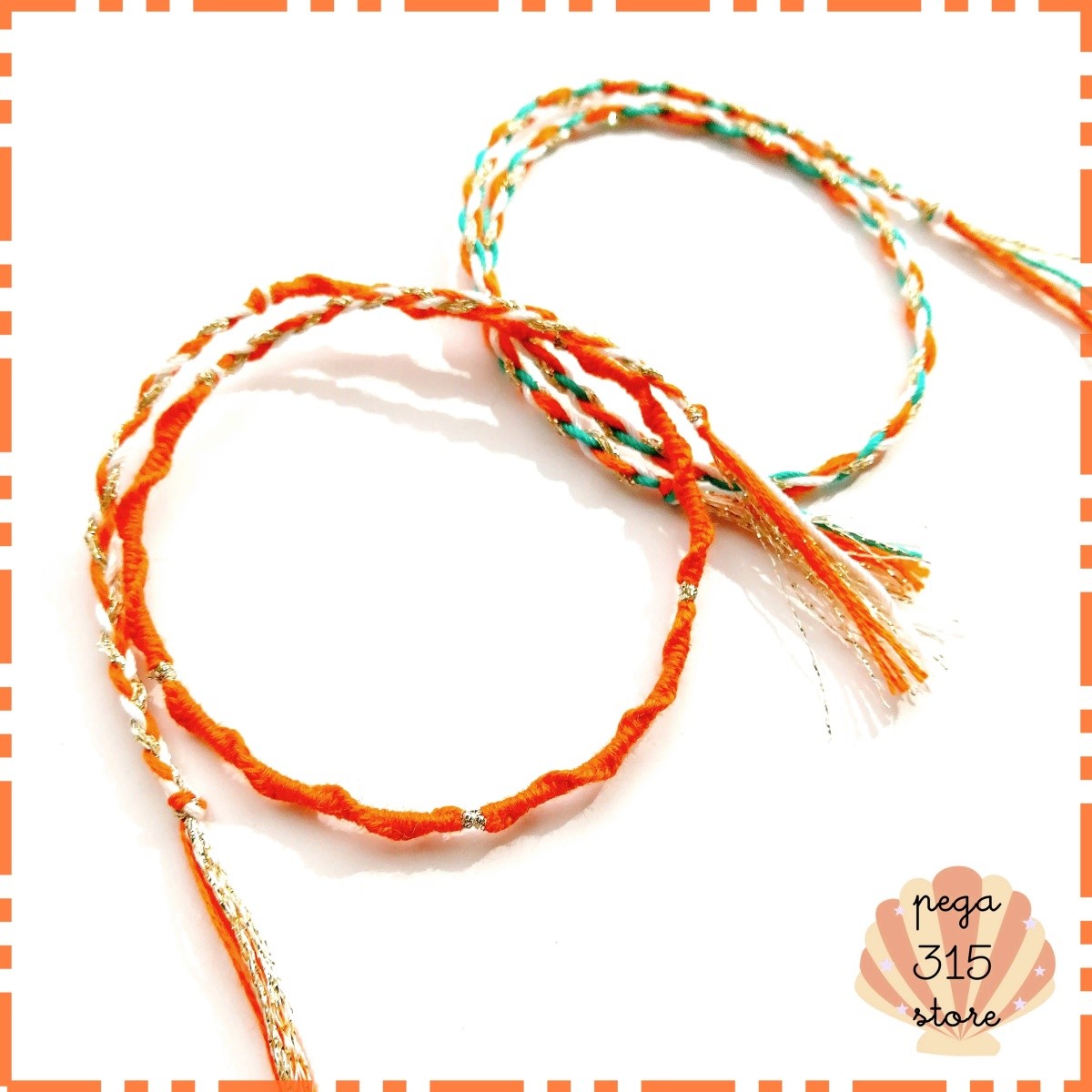 【送料無料】アンクレット ミサンガ 足首 2本SET オレンジターコイズ ワンポイントラメ anklet156