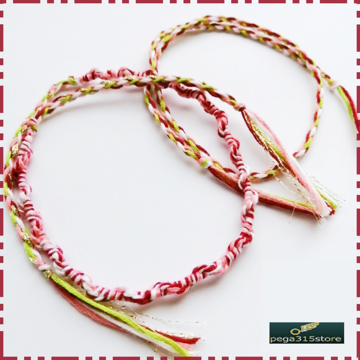 アンクレット ミサンガ 足首 2本SET エンジ サクラピンク ツイードMIX anklet180 送料無料
