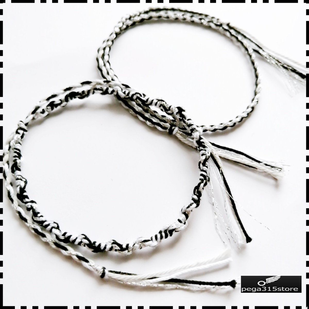 【送料無料】アンクレット 足首 ミサンガ ツイードMIX 2本セット メンズ BKWHSV anklet197