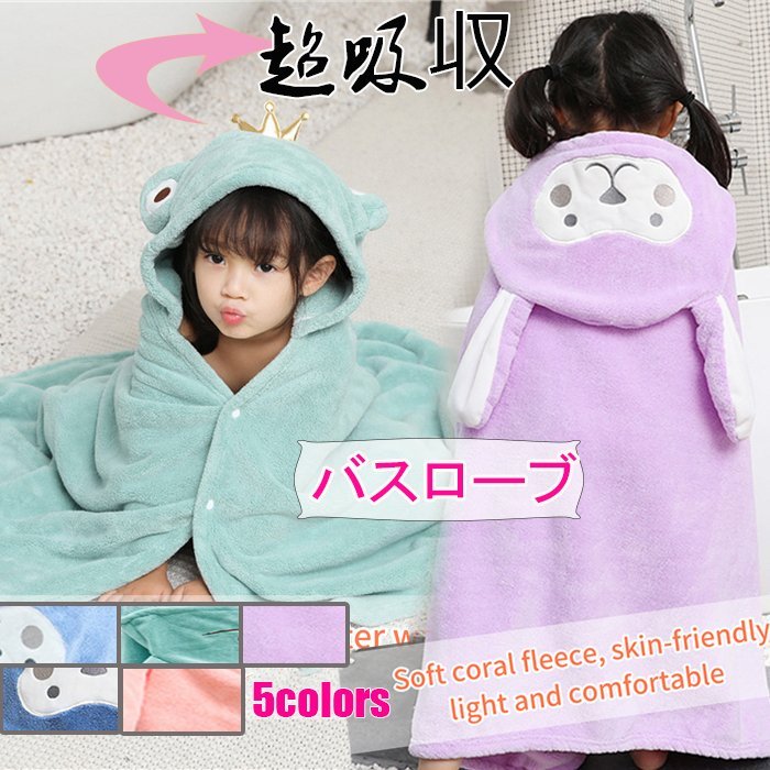 バスローブ 子供用 バスタオル 着ぐるみ ベビー ルームウェア 可愛い フード付き ふわふわ 吸水 抗菌防臭 お風呂 温泉 ご出産祝い プレゼント 男女兼用