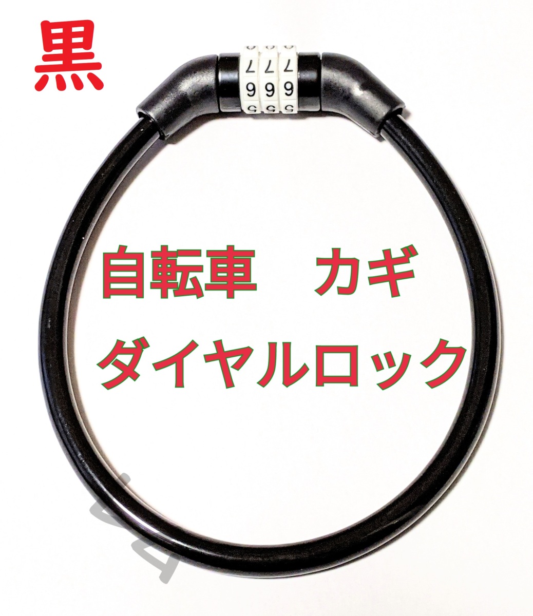 黒 ブラック 自転車 鍵 ダイヤルロック 35センチ ワイヤーロック