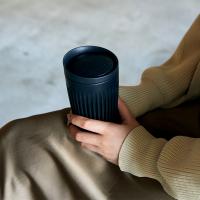 シンプルで飽きのこないカラーとフォルム、そして、表面の凹凸(ストライプ加工)が特徴的。