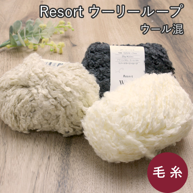 毛糸 リゾート Resort ウーリーループ ふわふわ ウール混 アクリル 極太 かわいい 棒針 12号 13号 かぎ針 10/0号 7mm 手編み 手芸 ハンドメイド メール便NG