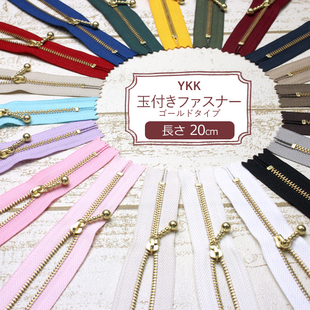 ファスナー 14cm YKK 玉付き ゴールド 金色 ジッパー チャック ジップ ボールチェーン ポーチ 財布 ポケット ハンドメイド 手芸