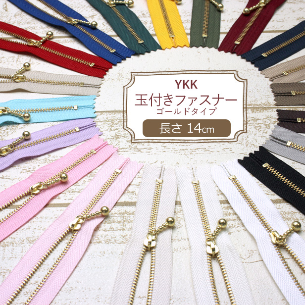 ファスナー 20cm YKK 玉付き ゴールド 金色 ジッパー チャック ジップ ボールチェーン ポーチ ペンケース パンツ ハンドメイド 手芸