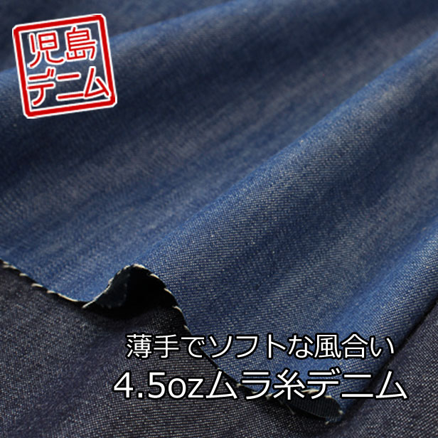デニム 生地 薄手 シャツ ブラウス ギャザー 柔らかい 子供服 ハンドメイド 人気 岡山 児島 4.5オンス ムラ糸デニム 無地 きれい メール便1.5m 販売単位50cm