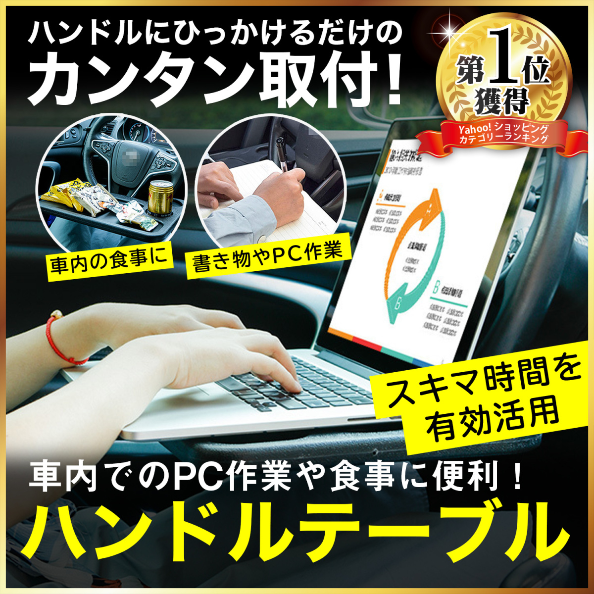 車 車用 テーブル ハンドルテーブル 車載テーブル 運転席 パソコン テレワーク 車内収納