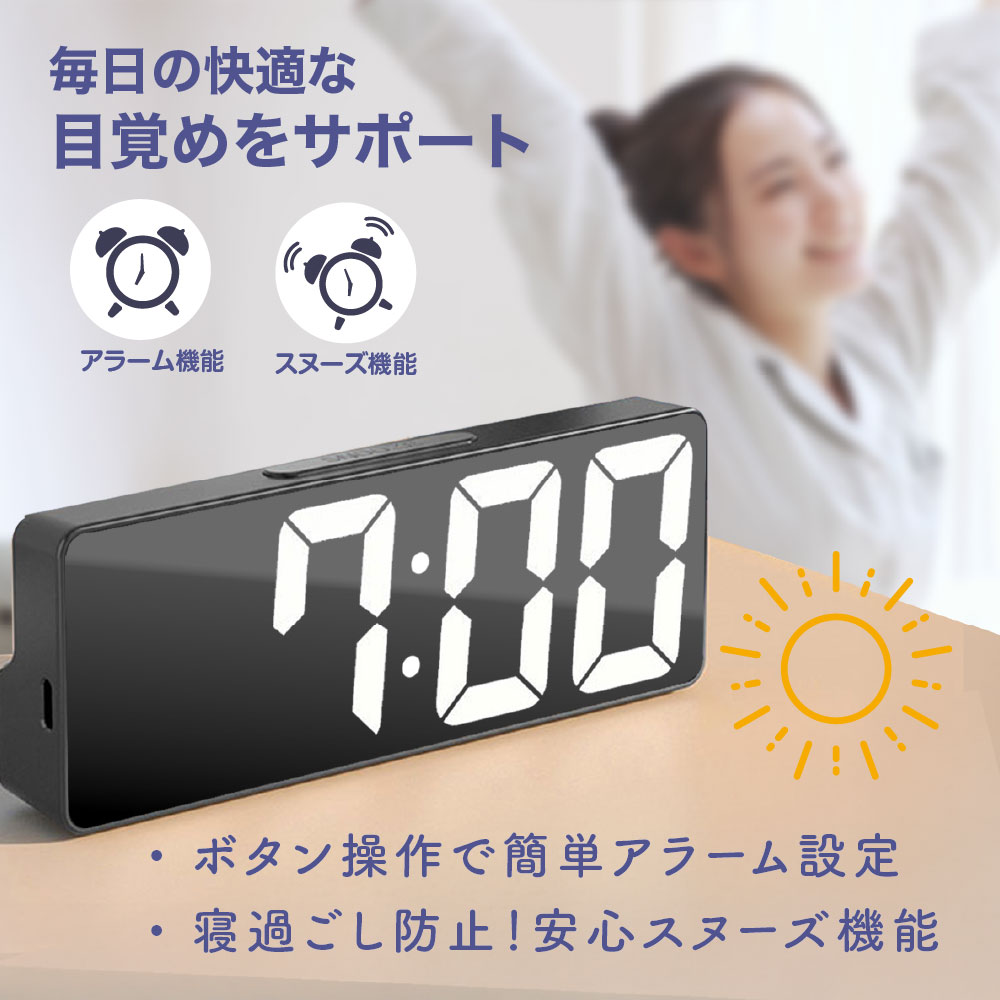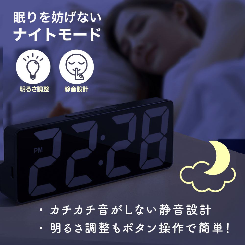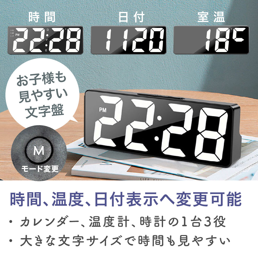 目覚まし時計 めざまし時計 デジタル時計 デジタル 置き時計 大音量 おしゃれ 卓上時計 日付 温度計 コンパクト 小型 静音 静か 電池式 USB給電式 シンプル
