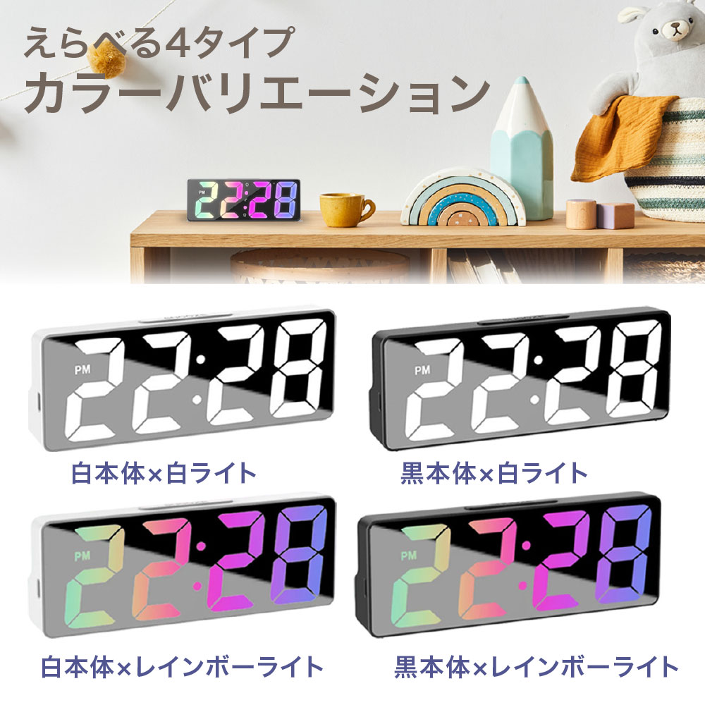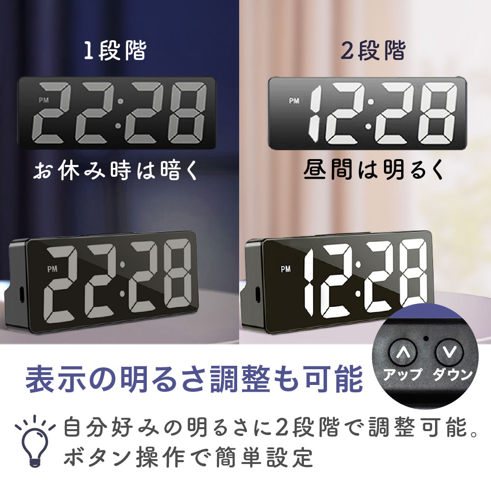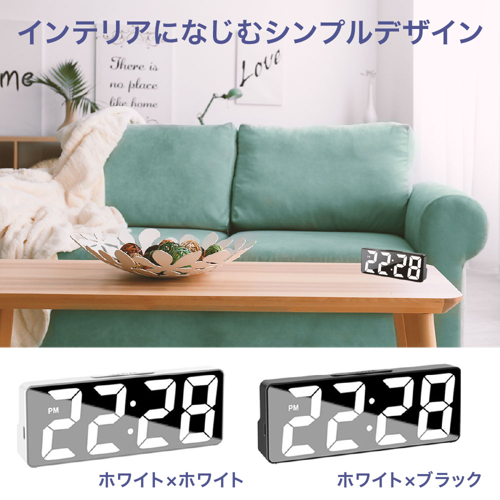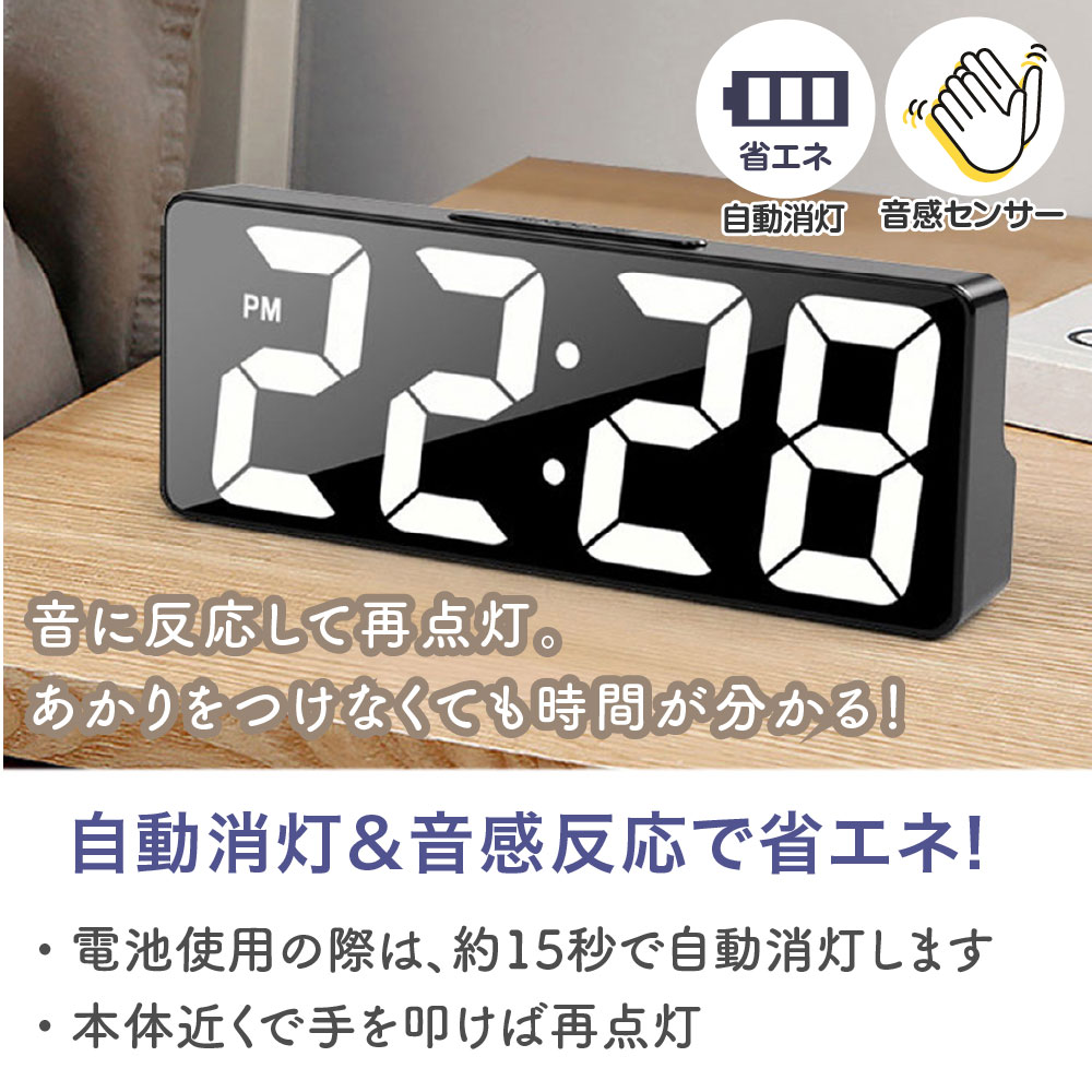 目覚まし時計 めざまし時計 デジタル時計 デジタル 置き時計 大音量 おしゃれ 卓上時計 日付 温度計 コンパクト 小型 静音 静か 電池式 USB給電式 シンプル