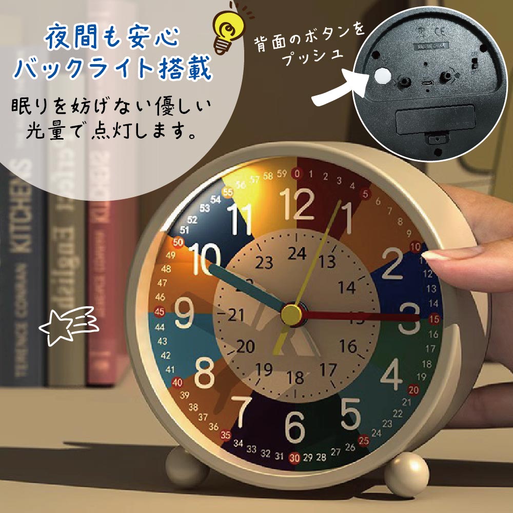 知育時計 置き時計 目覚まし時計 子供用 タイマー 教育用 知育玩具 アナログ キッズクロック かわいい おしゃれ 学習用 知育教材 7歳 4歳 5歳 6歳