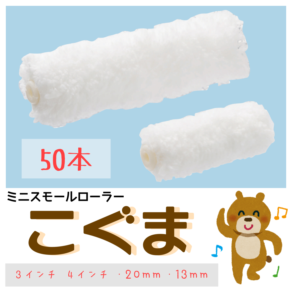 こぐま 3インチ 13ミリ 50本入 好川産業 ミニスモールローラー マイクロファイバー 塗装 DIY ミニローラー 塗装用ローラー 爆買