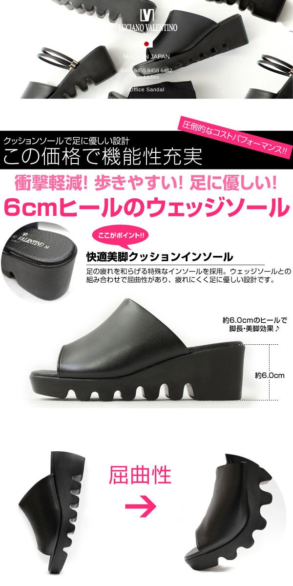 LUCIANO VALENTINO ルチアーノバレンチノ サンダル オフィス 軽量 6cmヒール ウェーブウェッジソール 6451 6455 6458 6462