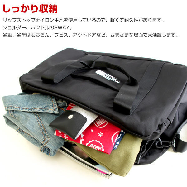リップストップナイロン生地を使用しているので、軽くて耐久性があります。ショルダー、ハンドルの2WAY。