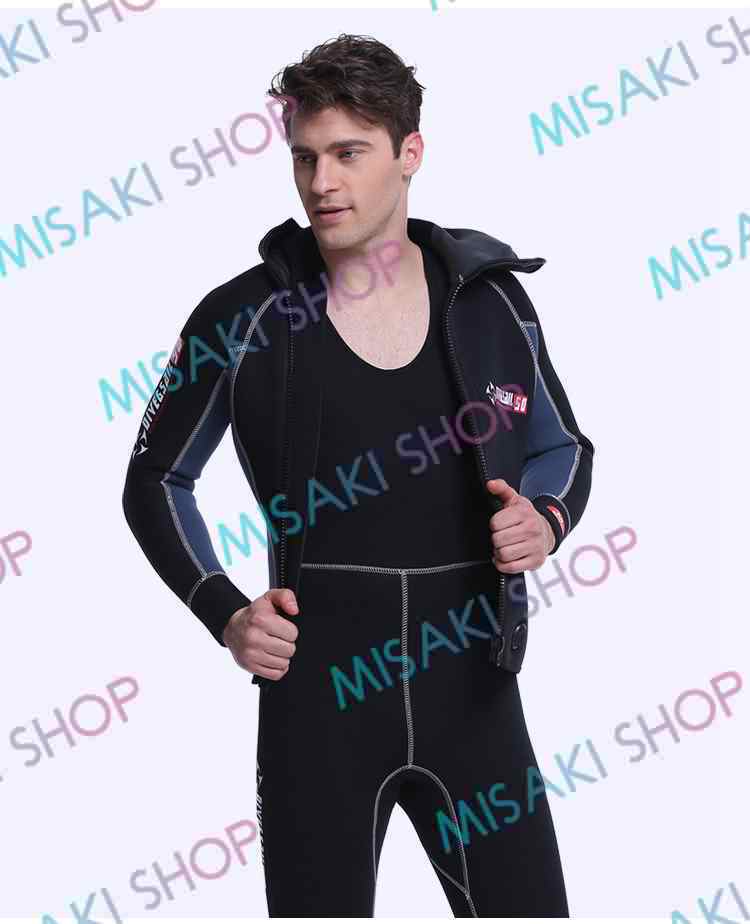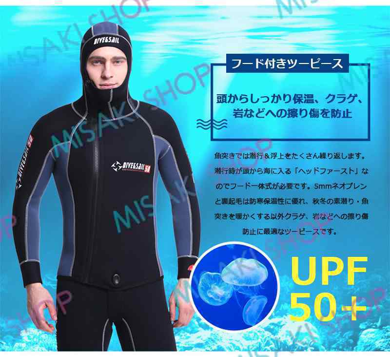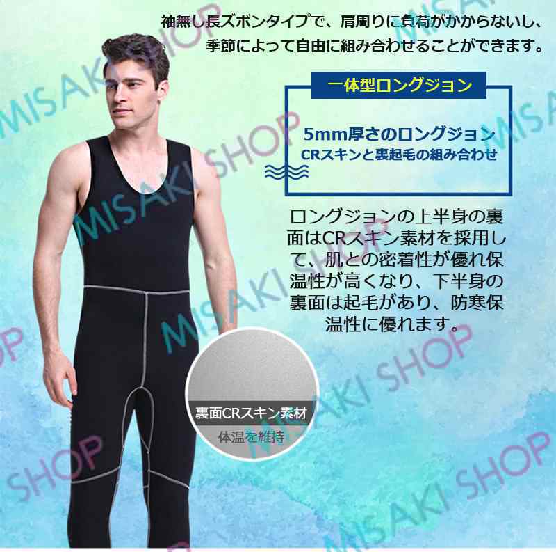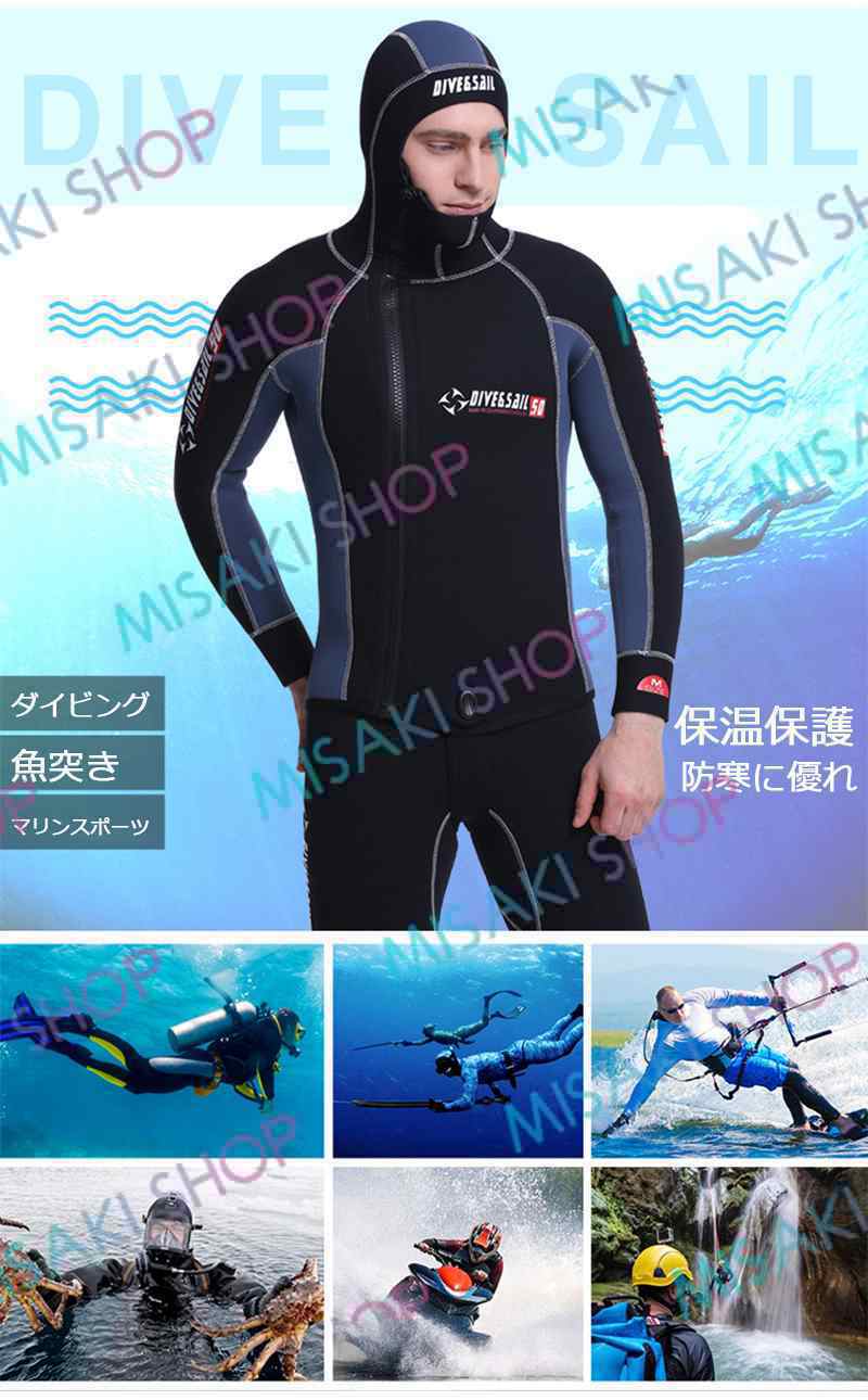 【5mm厚さ&ロングジョン仕様】フード付き 裏起毛 2ピース 上下セット メンズ ウェットスーツ フルスーツ トライアスロンウェア 素潜り ネオプレン 冬 防寒