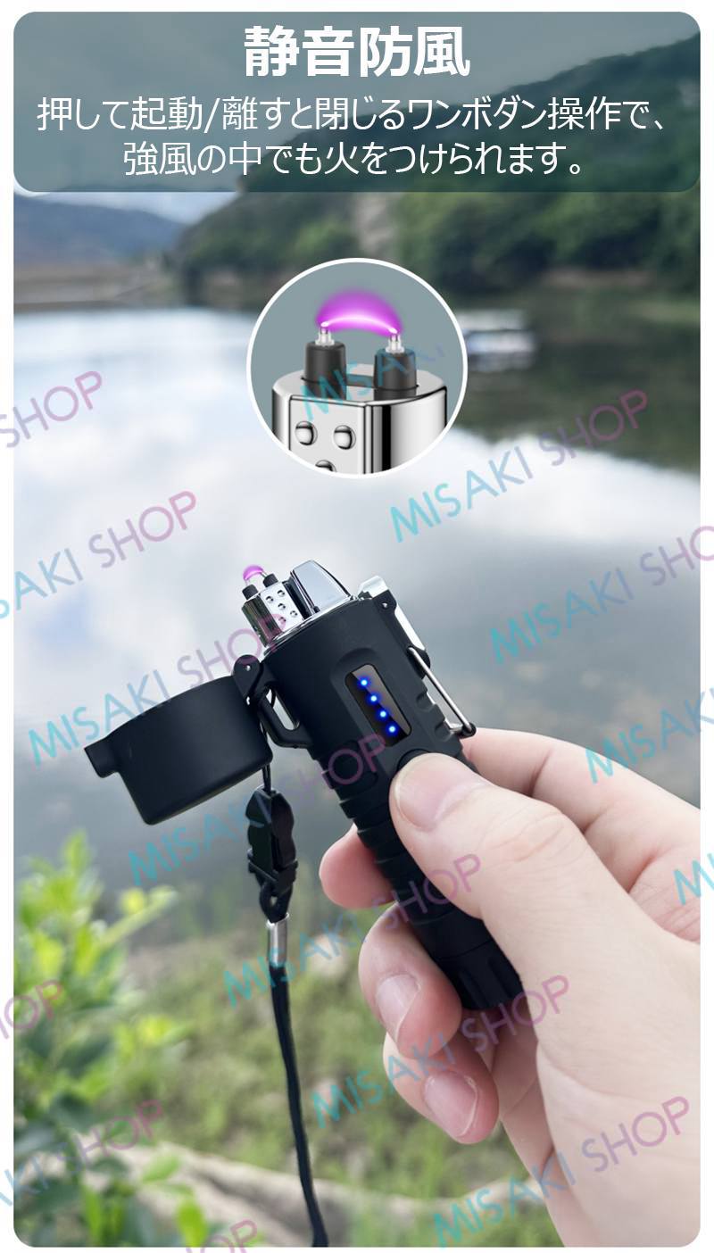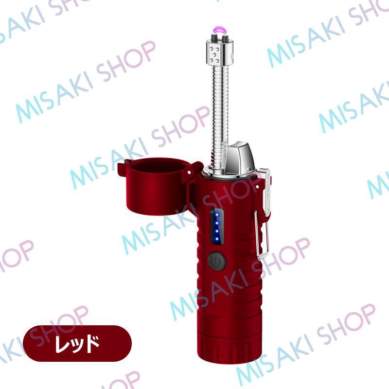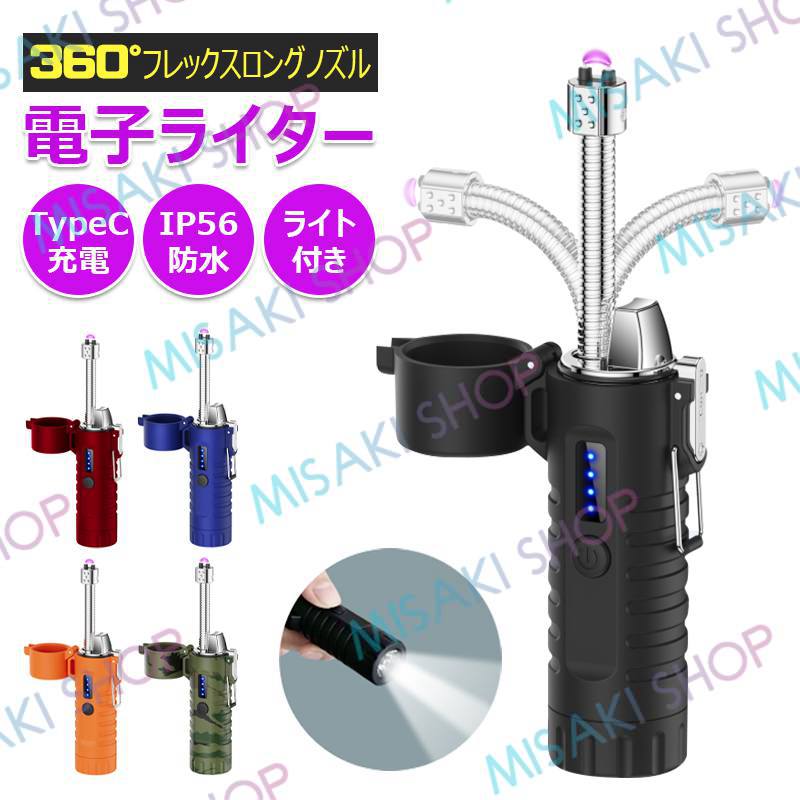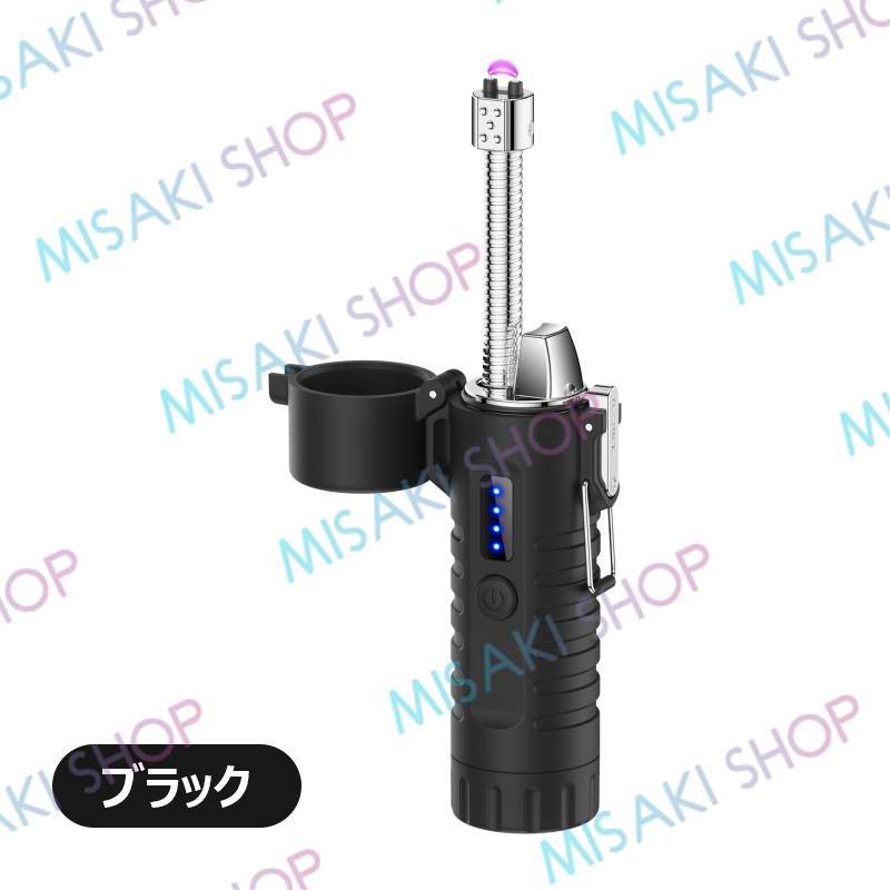【懐中電灯&ストラップ付き】電子ライター 無炎 LEDライト 電量表示 ノズル調整可能 TypeC充電 防風 耐風 火起こし 花火 防災グッズ 非常用 キャンプ s126