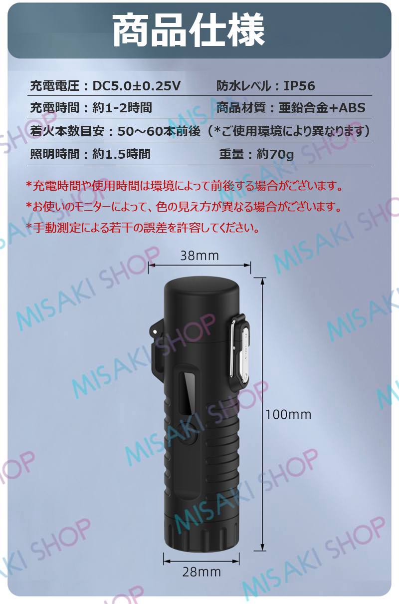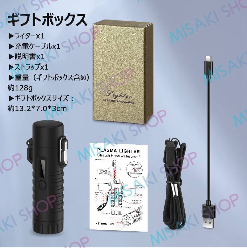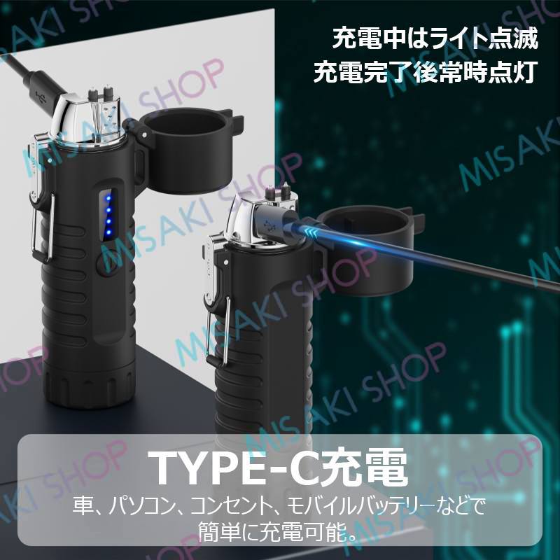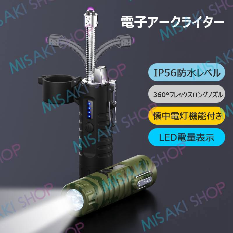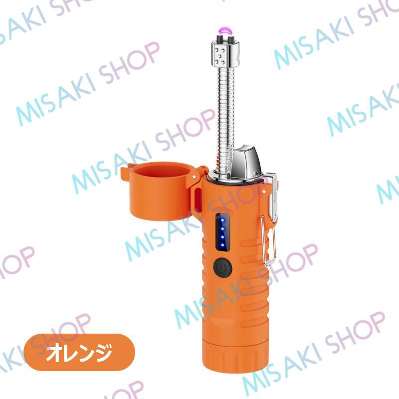 【懐中電灯&ストラップ付き】電子ライター 無炎 LEDライト 電量表示 ノズル調整可能 TypeC充電 防風 耐風 火起こし 花火 防災グッズ 非常用 キャンプ s126