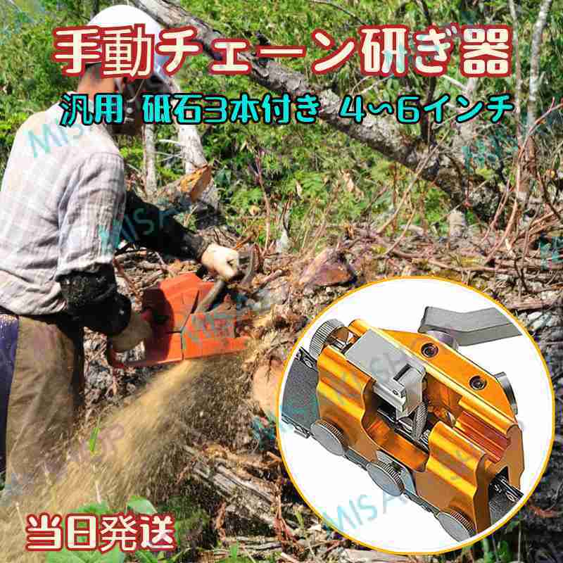 【砥石3本付き&4~6インチ】】チェーン研ぎ器 手動研ぎ器 チェーンソー 目立て機 電動チェーンソー対応 釘型 汎用 軸付 ダイヤモンド 道具 家庭用 業務用