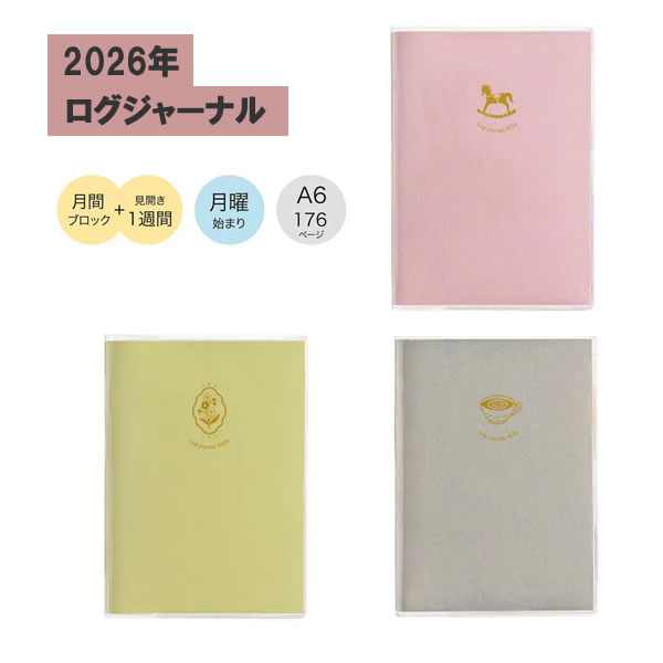 2026年 ログジャーナル 手帳 A6 週間 クツワ 月曜始まり ダイアリー2026 令和8年 スケジュール帳 予定 スケジュール 日記 おしゃれ