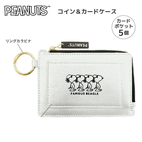 スヌーピー コイン&カードケース FAMOUS BEAGLE 2740 カミオジャパン 小銭入れ ミニ財布 薄い財布 リングカラビナ付き