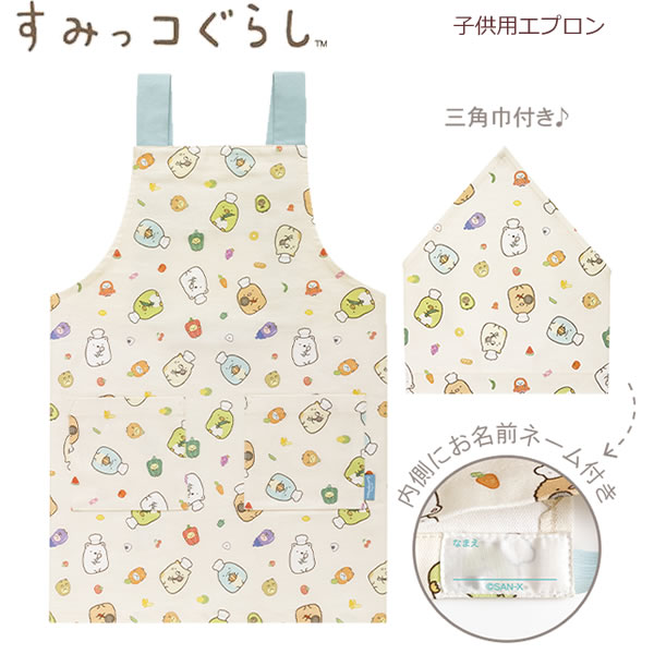 すみっコぐらし 子供用エプロン 3416 サンエックス かわいい 給食当番 おやつ作り お手伝い お店やさん 三角巾付き お芋パーティー クッキング CM44601