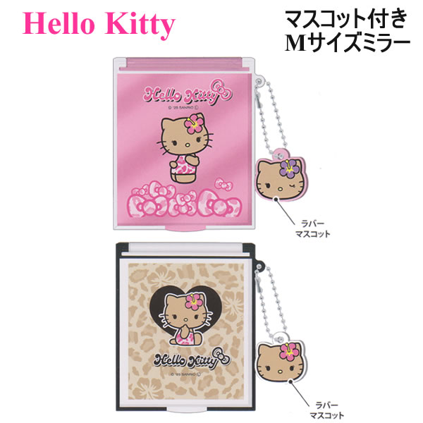 ハローキティ マスコット付きMサイズミラー 日焼けキティ クラックス Hello kitty ギャルキティ ハイビスカス 鏡 メイク かわいい