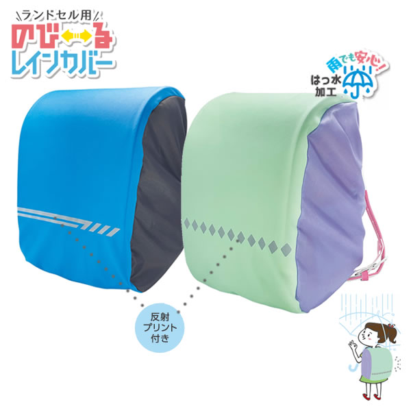 補助バックや給食袋を付けたままスッポリかぶせられるのび〜る生地のレインカバー