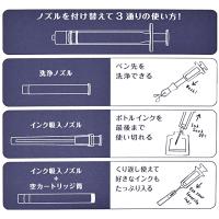 ≪スマホでご覧になられている方は「もっと見る」を押してください。≫専用ノズルを付け替えれば3通りの使い方。洗浄ノズルでペン先を綺麗にし、インク吸入ノズルでボトルインクを補充すれば、万年筆をいつでも快適に使えます。