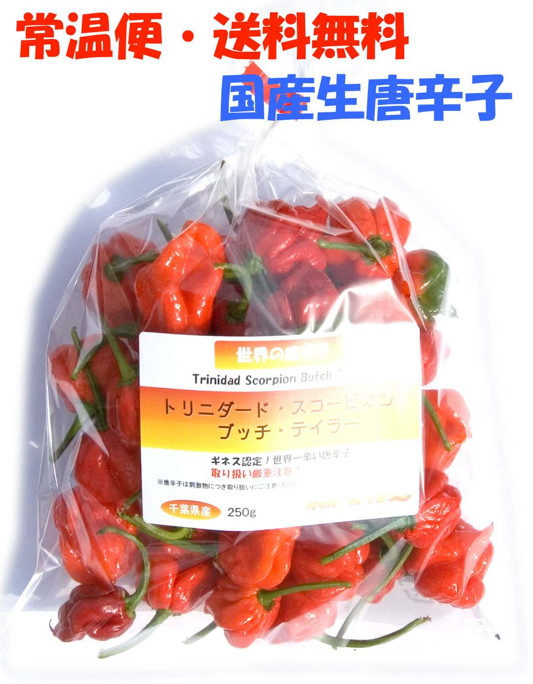 【常温宅配便・送料無料】国産 激辛生唐辛子 トリニダード・スコーピオン・ブッチ・テイラー(赤) 250g 生鮮品 千葉県産【3日以内受取必須】