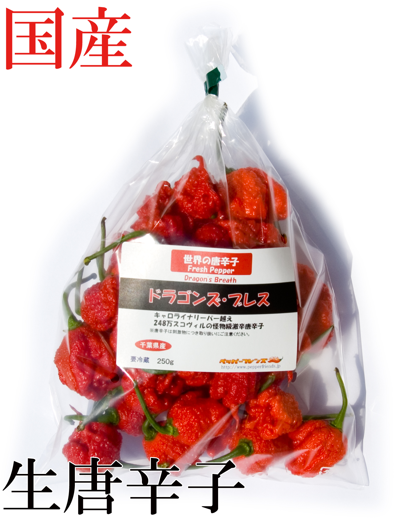 【冷蔵便】国産 激辛生唐辛子 ドラゴンズ・ブレス 250g 生鮮品 千葉県産