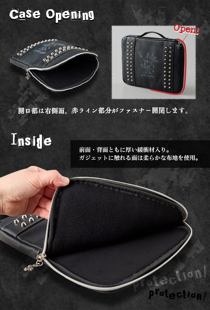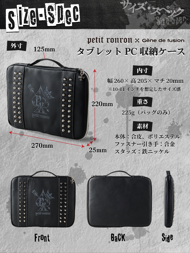 | 外寸:幅270×高220×マチ25mm 内寸:幅260×高205×マチ20mm ※高さはファスナーの閉まる高さです。 10-11インチのノートPCに最適なサイズ |